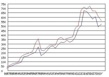 香港近年市區的士牌價走勢